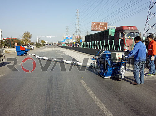 上图为青岛金年会机械有限公司路面抛丸机在董家口港附属公路施工效果图。