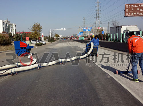 从图上可以看到,我公司生产的路面抛丸机对道路清理效果十分明显,并且操作简单,两个人就能熟练操作,适合各种平整大面积作业,效率高,费用少。