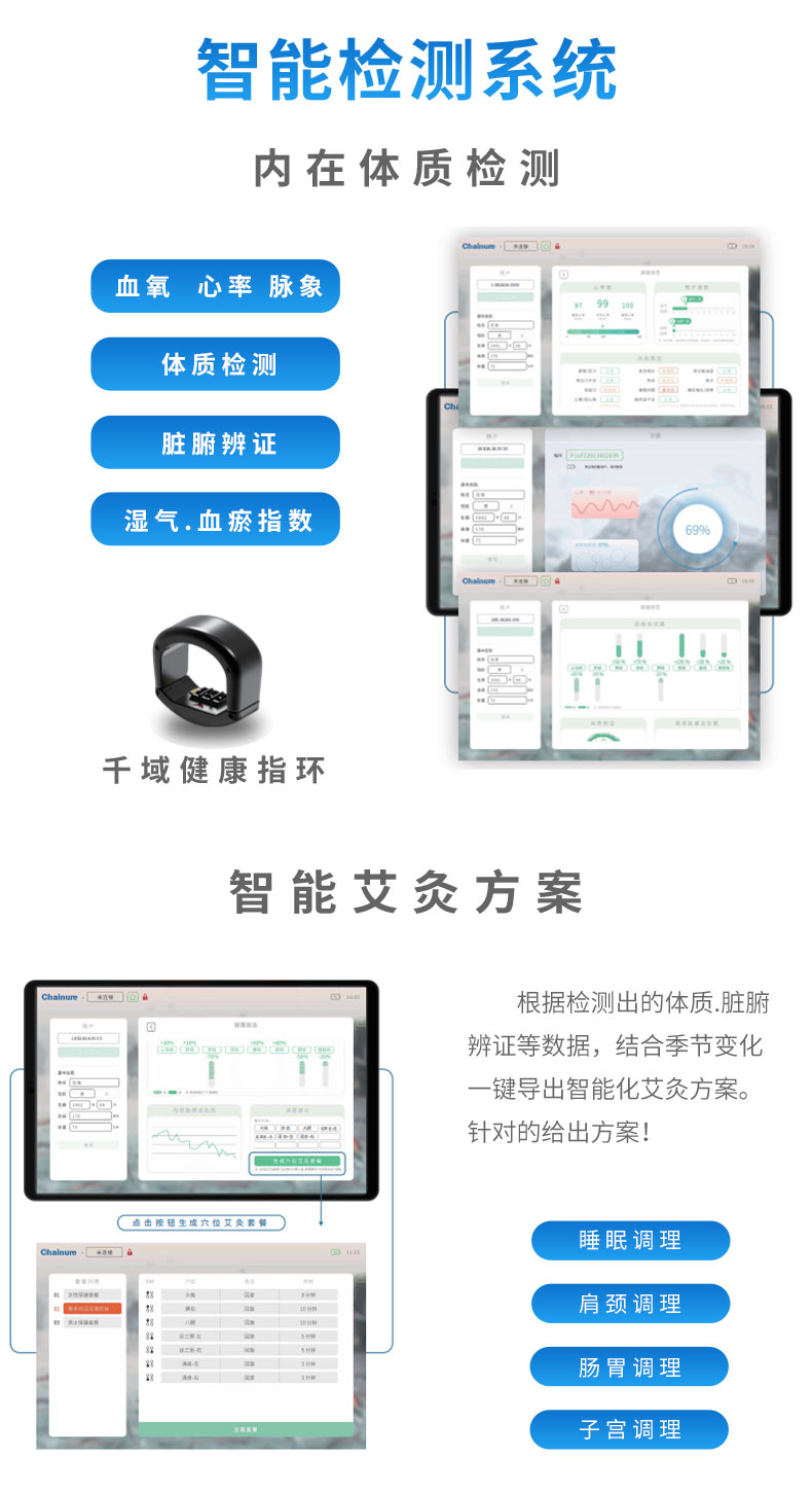 根据检测出的体质、脏腑辨证等数据,结合季节变化一键导出有针对性的智能化艾灸方案。
